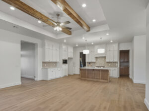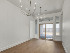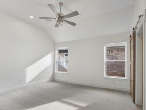 The open-concept kitchen and dining area are perfect for both everyday meals and entertaining guests. The kitchen boasts high-end appliances, a center island with bar seating, and ample cabinet space. The dining area features a charming chandelier and sliding glass doors that lead to a backyard patio, making it an ideal spot for dining. There is a well-appointed study providing an ideal space for remote work or a quiet reading nook. Large windows in the study overlook the front yard, offering a peaceful workspace. One of the standout features of this home is the large mudroom, conveniently located near the main entrance from the garage. This mudroom offers abundant storage space for coats, shoes, and bags, ensuring a clutter-free entryway. It also connects to a spacious laundry room equipped with additional storage.