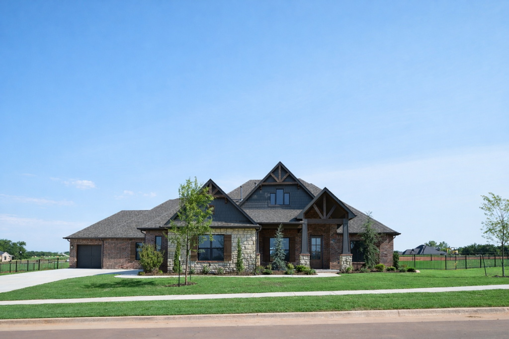 This home features four bedrooms and three and a half bathrooms, combining contemporary design elements with natural, rustic accents. The house boasts a charming exterior with modern and rustic elements. The facade combines clean lines, natural materials, stone, and wood, creating a warm and inviting atmosphere. Large windows and a covered porch provide an excellent connection to the outdoors. Upon entering, you step into an open-concept living area that seamlessly integrates the kitchen, dining room, and living room. The space is characterized by high ceilings, a stone fireplace, and large windows, allowing ample natural light to flood the area. The flooring is light creating a modern rustic feel. The kitchen features sleek, modern appliances and fixtures. A large center island provides additional workspace and doubles as a breakfast bar. Nestled off of the kitchen are 3 secondary bedrooms and two baths that are anchored by a second living area. This is a great space to watch a movie, do homework or play games. The primary retreat features rustic beams with a lot of natural light. You will love the seclusion this retreat offers as well as the spa-like bath. The center stage of the primary bath is the freestanding tub. Relaxation is easy in this space. The Primary Closet has a center chest of drawers with seasonal rods. If you love outdoor living this home has it. There is plenty of space for a seating and dining area around the outdoor fireplace. A study, 1/2 bath, & formal dining complete this home.